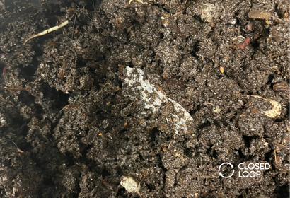 Image: An aqueous barrier paper cup after 12 weeks in a home composting environment.